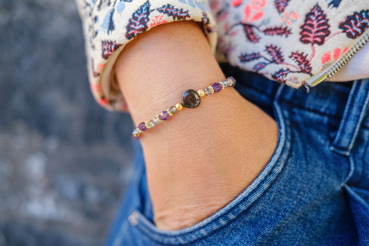 Bracelet amethyste facettée (4mm) et perles en verre facettée (4mm) avec fermoir magnetique