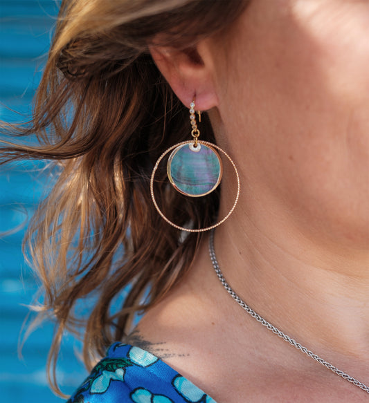 boucle d'oreille en laiton doré géométrique ronde et pendentif en nacre
