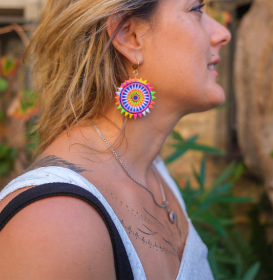 Boucle d'oreille ronde en rotin et tissage maxi coloré 5cm