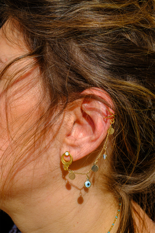 Bague d'oreille ear cuff acier inox doré et pampilles oeil vendue à l'unité