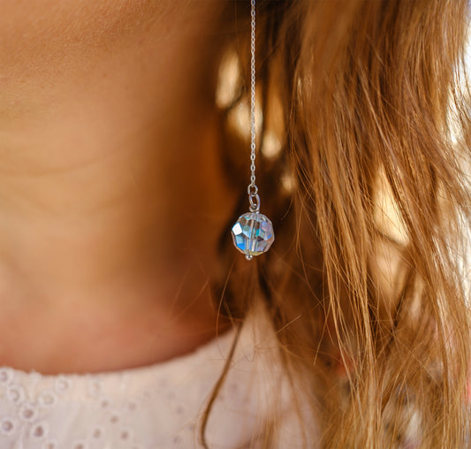 Boucle d'oreille pendante (6cm) en argent 925 et perle en cristal (10mm)