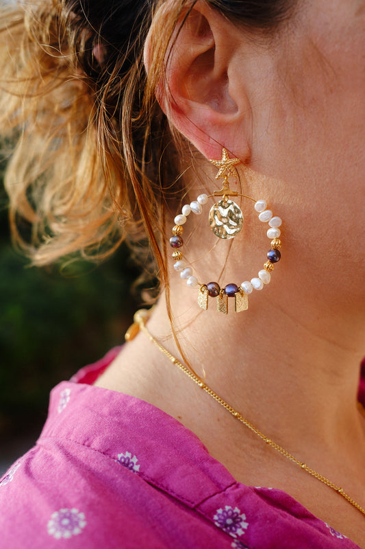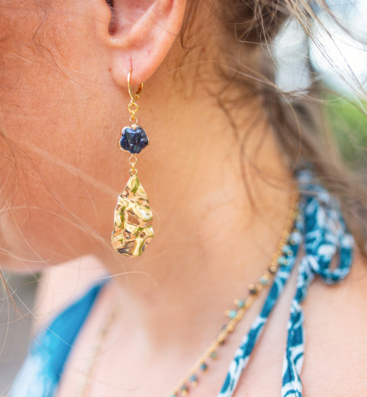 boucle d'oreille nacre noire et sequin goutte martelé