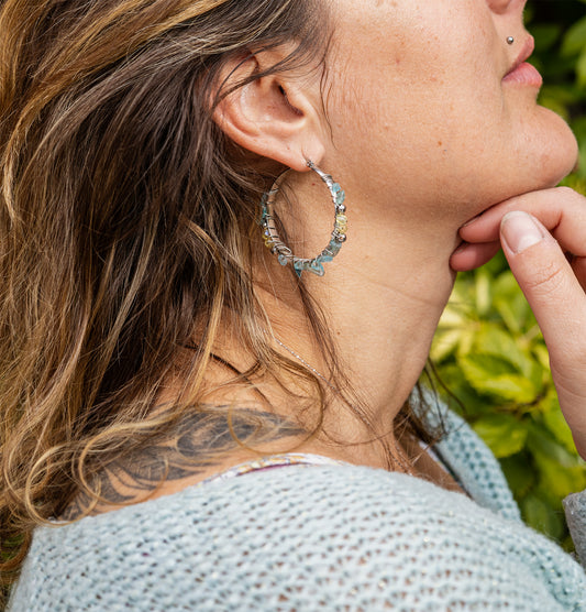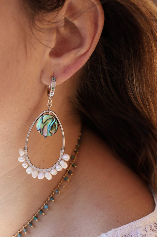 Créole avec pendant en nacre abalone et perle en verre