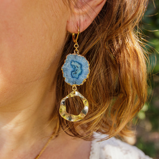 Boucle d'oreille druzy bleu boheme