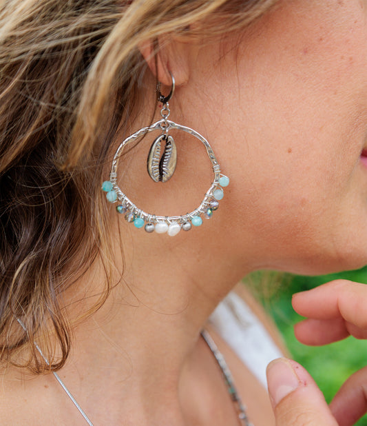 Ici vous trouverez des boucles d'oreilles Cauris&Co (cauris and co) dans un esprit bohème, faite main, dans mon atelier à Cannes.