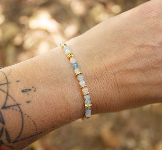 Bracelet femme quartz rose facettée et perle en verre 4 mm