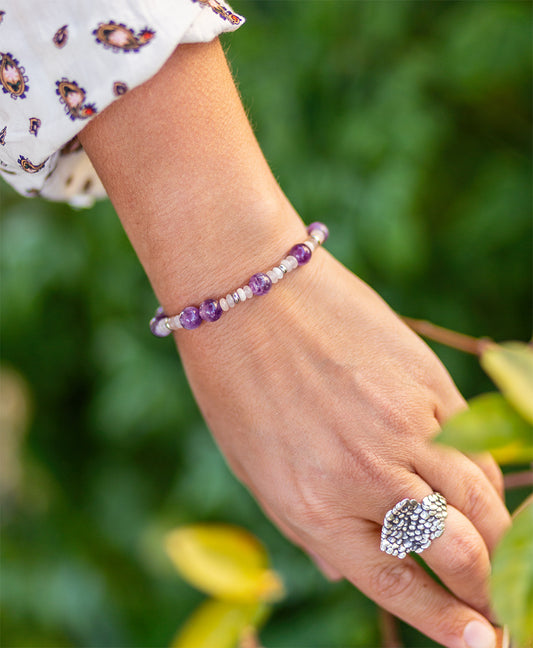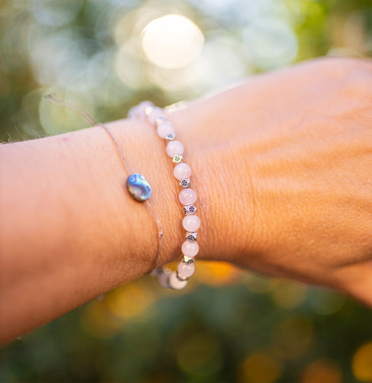 bracelet femme améthyste (8mm et quartz rose 6mm)