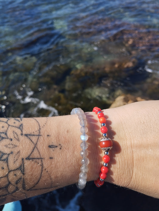 Bracelet femme perles labradorite facettée 6 mm (réservé Ségolène)