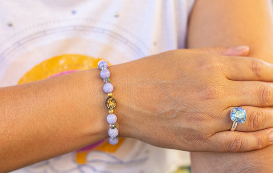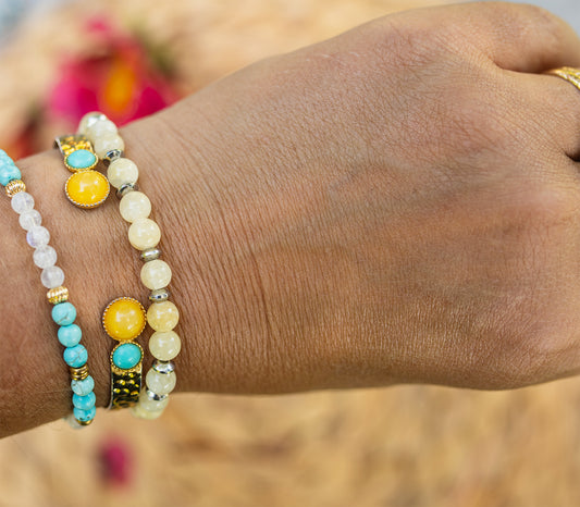 bracelet pierles en jade jaune 6mm acier inoxydable