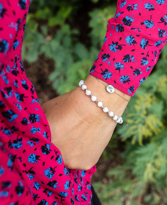bracelet nacre 6mm et perles en plaqué argent fait main piece unique