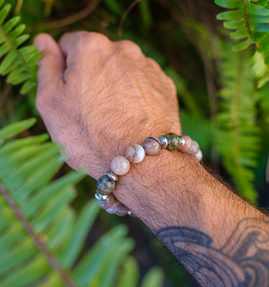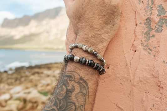 bracelet homme agate du Botswana et turquoise d'afrique 10mm