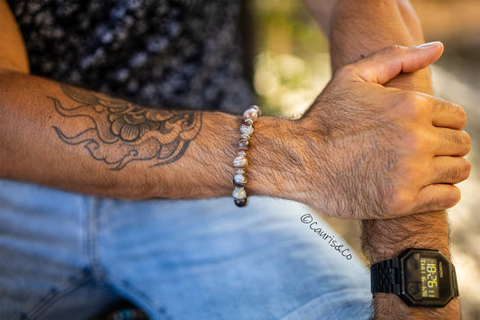 Ces bracelets Cauris&Co (cauris and co) sont réalisés avec des perles naturelles (oeil de tigre, labradorite, obsidienne agate pour ne citer qu'elles), des perles en acier inoxydable, en argent 925 ou en plaqué argent dans style ethnique.