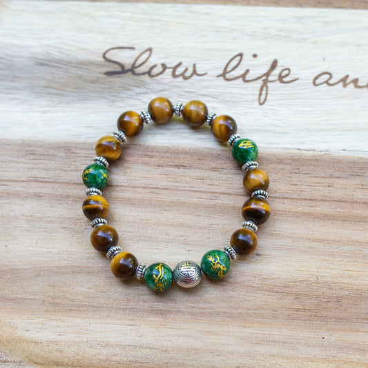 bracelet oeil de tigre,perle en verre avec dragon fait main piece unique
