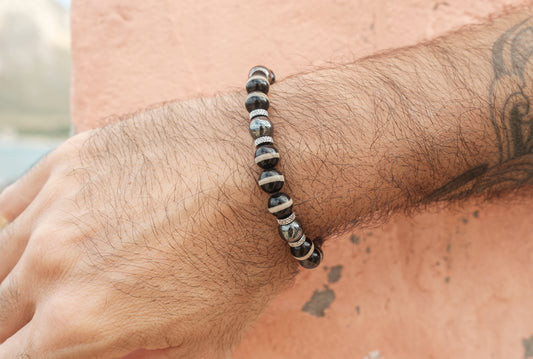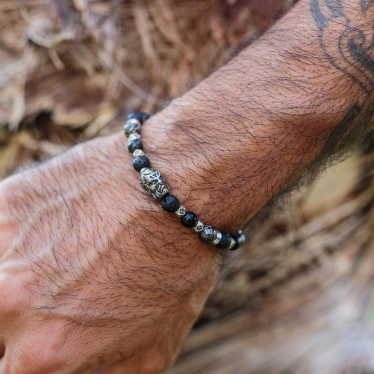 Collection la famara bracelet homme pierre de lave et obsidienne 8 mm