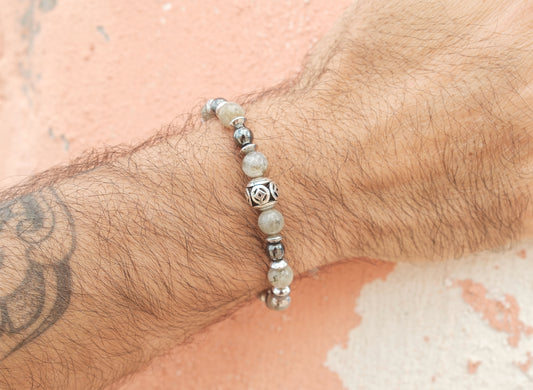bracelet homme perle heishi en quartz, hématite et turquoise nœud