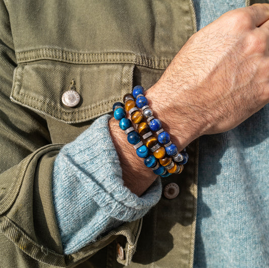 bracelet perles oeil de tigre et acier inoxydable 10mm