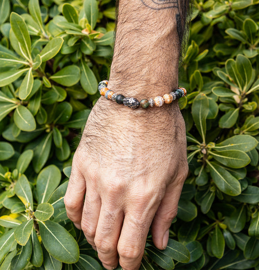 Bracelet homme en Pierres Naturelles – Jaspe Océan & Perle Antique