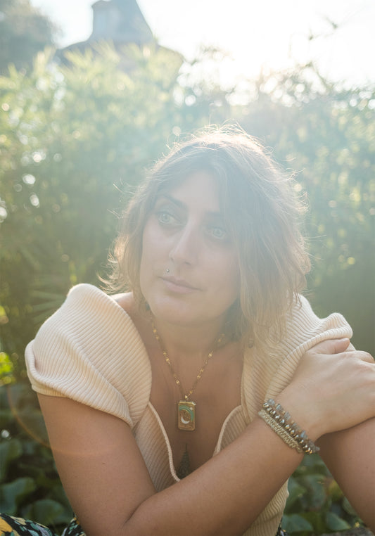 collier carte tarot 'l'imperatrice et chaine en laiton doré