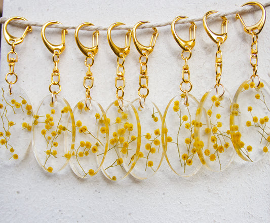 Porte-clé Mimosa Résine Artisanal - Fleurs Séchées faite main