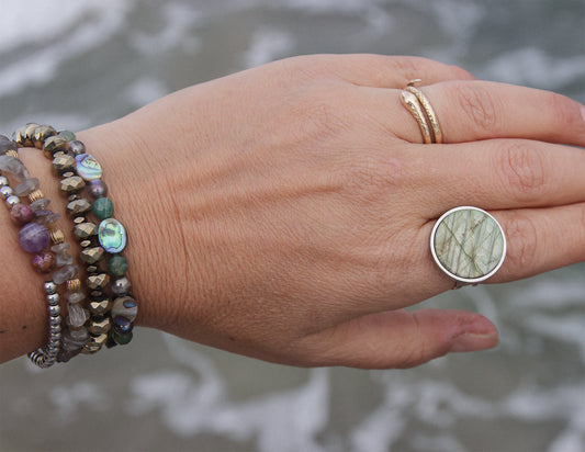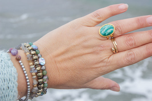Bague dorée réglable – Pierres naturelles Acier inoxydable