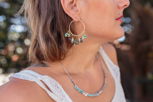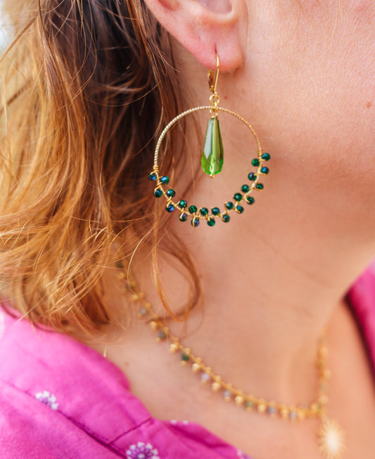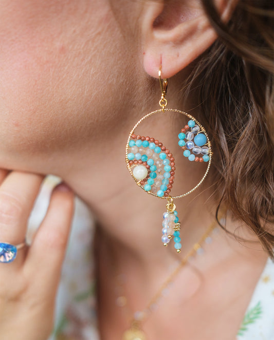 Boucle d'oreille étoilée asymétrique avec gouttes en verre et sequins