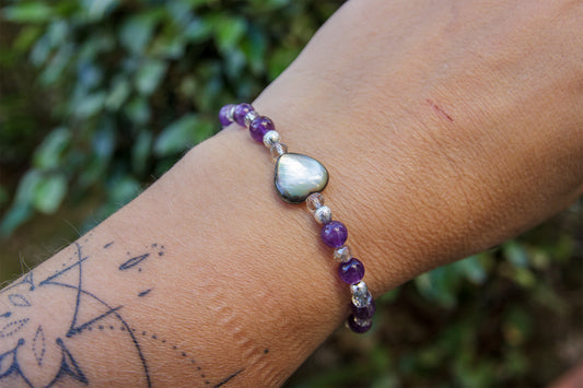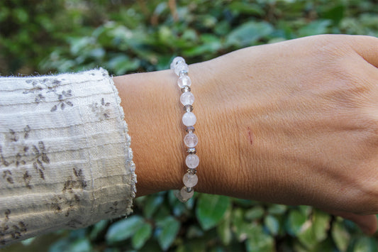 Bracelet femme quartz rose et perle en verre facettée 6mm