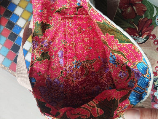 Sac tote bag femme Frida 45*45 cm doublure batik PIECE UNIQUE