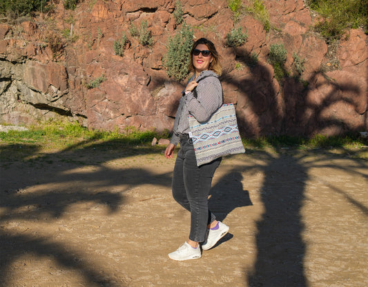 sac tote bag jacquard motif ethnique PIECE UNIQUE 47cm47cm