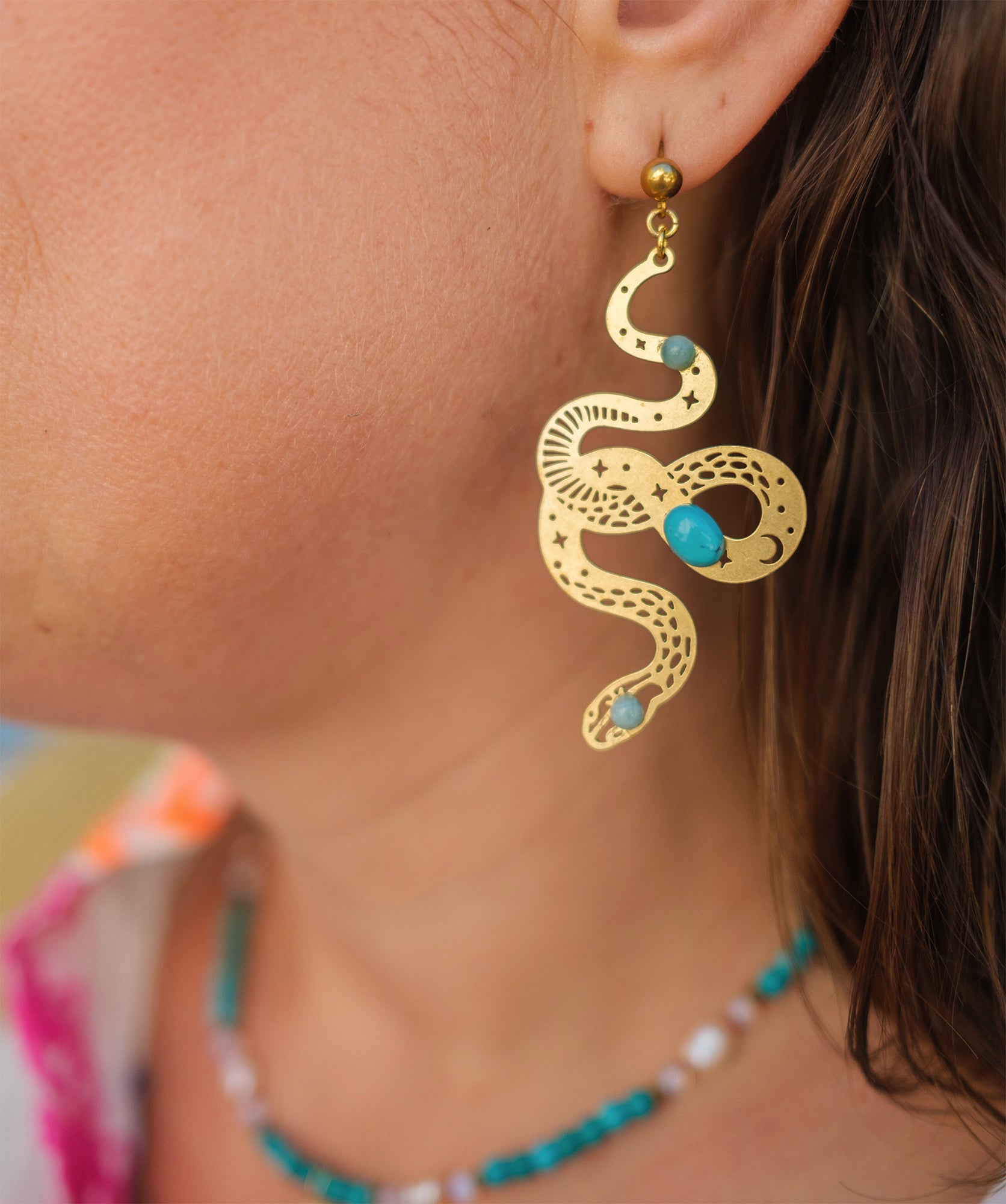 Boucles d’oreilles talisman serpent et cabochon turquoise