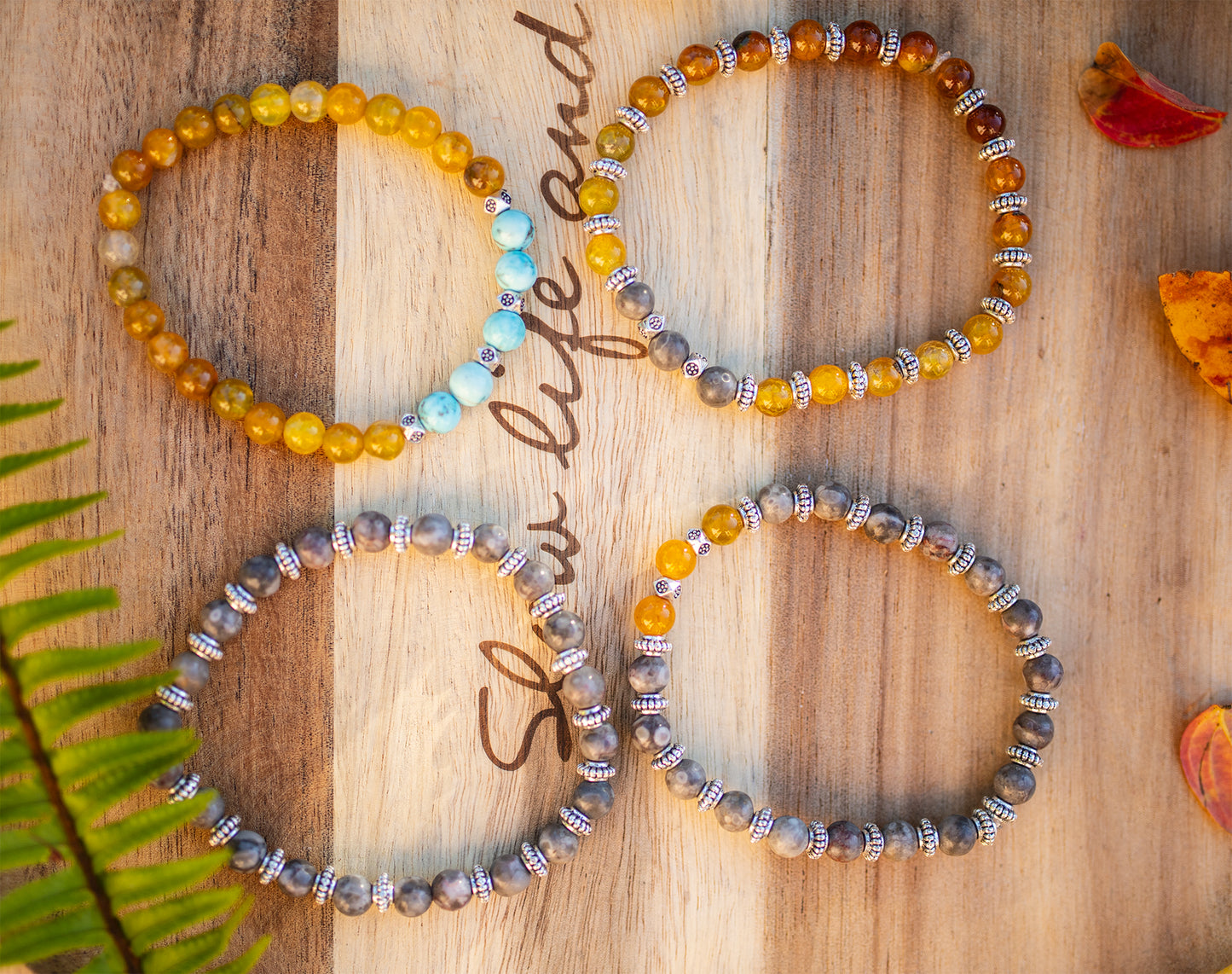 bracelet agate jaune et grise fait main piece unique