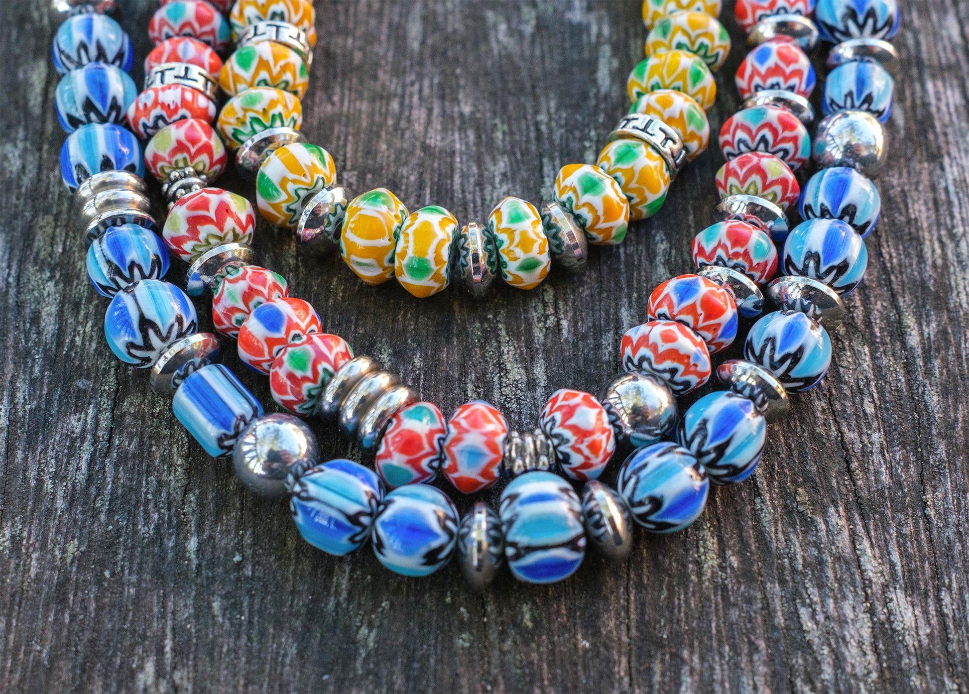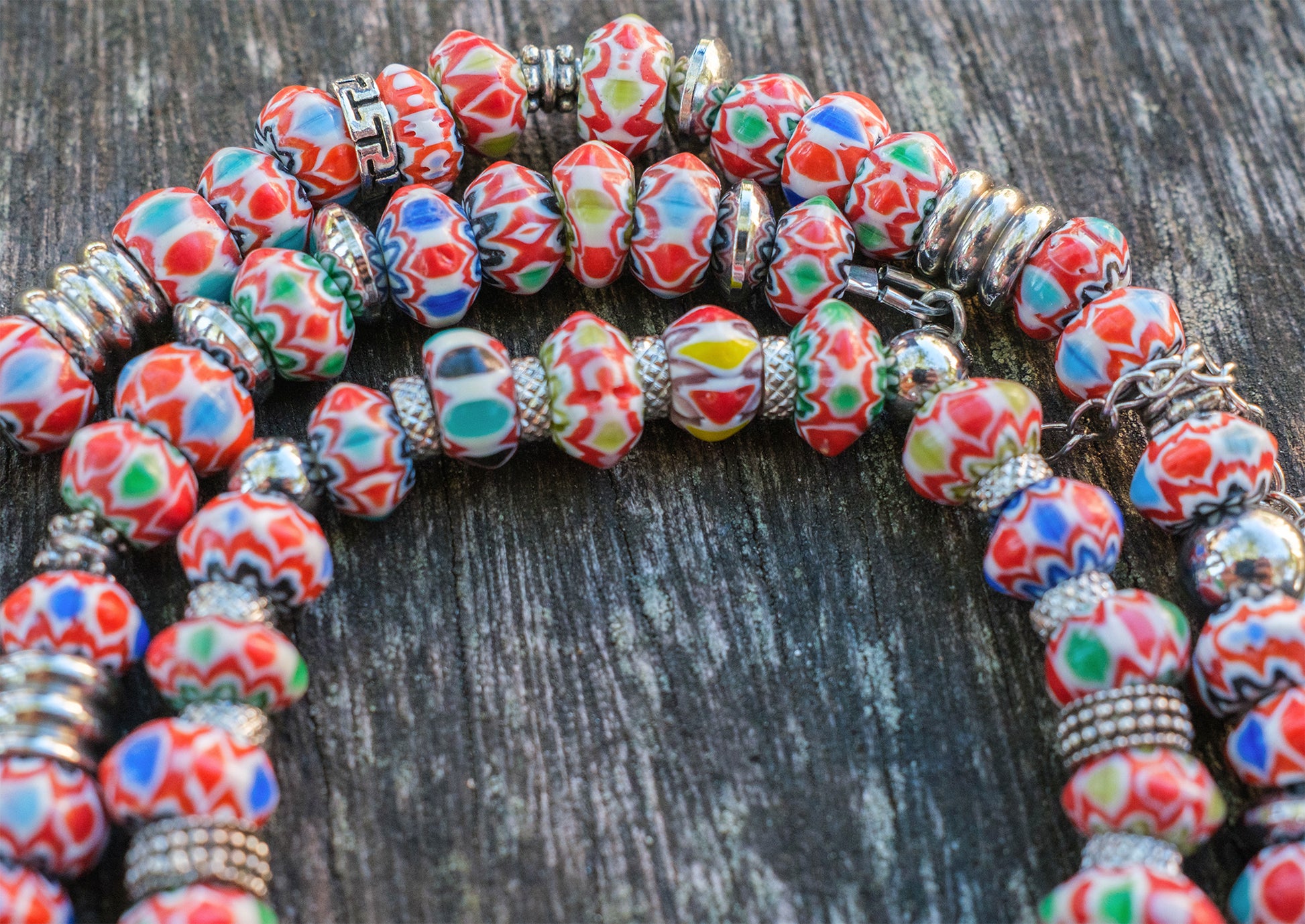 Ce collier homme perles chevrons rouge Cauris & Co (Caurisandco) est réalisé à la main dans mon atelier à Cannes .